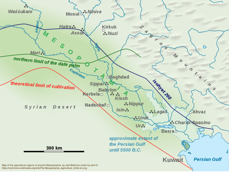 Mesopotamia is an ancient, historical region that lies between the Tigris and Euphrates rivers in modern-day Iraq and parts of Kuwait, Syria, Turkey and Iran. Part of the Fertile Crescent, Mesopotamia was home to the earliest known human civilizations. Scholars believe the Agricultural Revolution started here.